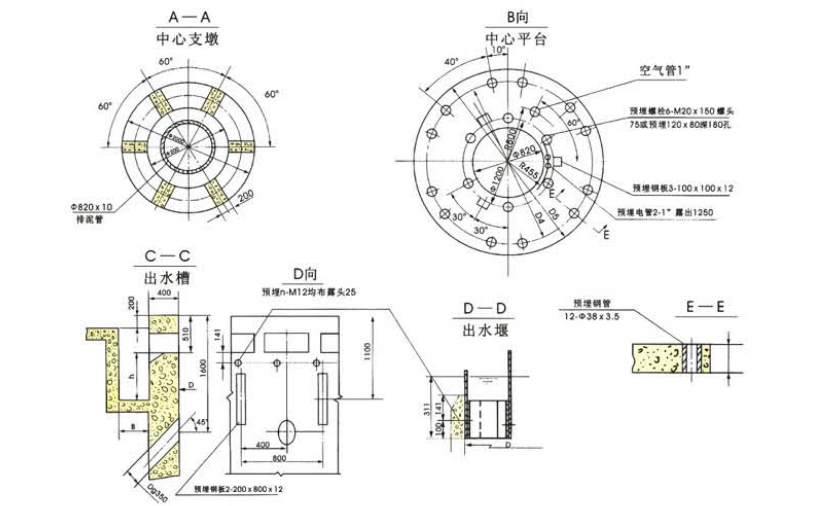 特點(diǎn):周邊傳動吸泥機(jī)的傳動機(jī)構(gòu)為擺線針輪減速機(jī)和開式鏈條二級減速。行走車輪沿池頂走道作圓周運(yùn)行,池頂污泥經(jīng)刮板刮集由吸泥管吸出、通過排泥槽及排泥缸排出池外。液面可設(shè)有浮渣刮集裝置,其電源及壓縮空氣均從池底中心輸入。